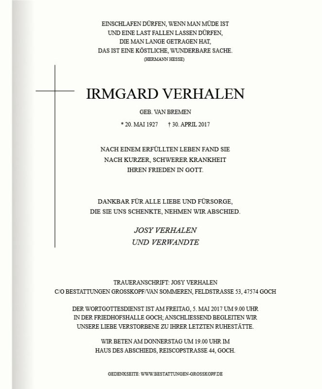 Frau Irmgard Verhalen geb. van Bremen