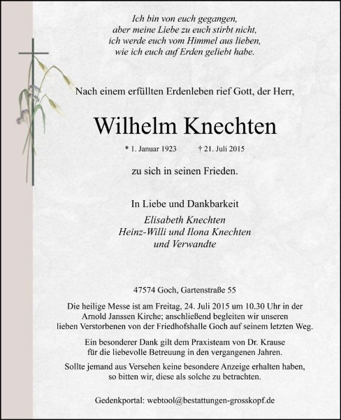 gestorben am 21. Juli 2015 in Kleve